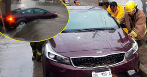 Bomberos intervino para rescatar al automovilista en la colonia Esfuerzo Nacional.