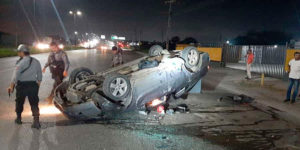 Con las llantas hacia arriba terminó un vehículo particular que era manejado a exceso de velocidad, por la avenida de la industria, la madrugada del jueves.