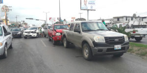 Elevados daños materiales dejó como saldo un choque múltiple, suscitado la mañana del jueves, en la carretera Tampico Mante en Tampico.