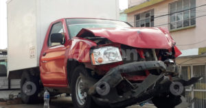 Un tráiler Kenworth color blanco y una camioneta con caja tipo estaquitas participaron en el encontronazo.