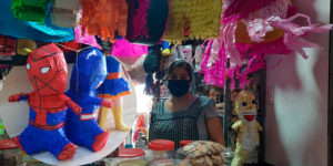 Ana Melo Díaz Salas, habló sobre la falta de la tradicional piñata en las fiestas, la venta de este producto disminuyó el 50 por ciento, por fortuna aún compran dulces, lo que les deja ganancias.