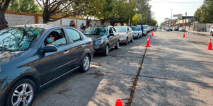 Por la caída de carpas a causa de los fuertes vientos, se retrasó la vacunación anticovid en el Drive Thru del Tecnológico de Ciudad Madero este jueves.