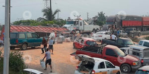 Al parecer por el fuerte viento la unidad quedó costaleada; se desconoce si hubo personas lesionadas