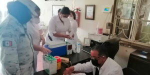 Trabajadores de salud que fue resguardado por personal de la Guardia Nacional, vacunó contra el Covid-19 a 25 adultos mayores de dos asilos que hay en Ciudad Madero.