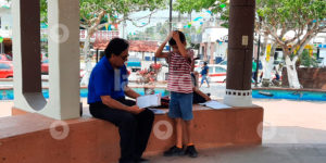 El profesor de la Escuela Primaria Manuel Azueta, Gonzalo Chávez, asiste de dos a tres veces por semana al kiosco del centro de Pueblo Viejo para atender las inquietudes escolares de sus alumnos.