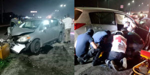 Una mujer que conducía su vehículo la noche de ayer con dirección de norte a sur en la avenida de la industria, impactó su vehículo en la base de un señalamiento.