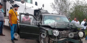 Tráiler impacta camioneta y la proyecta contra remolque de tinacos.