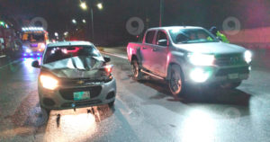 Protagonizaron la colisión un Chevrolet Beat color gris y una Toyota Hilux del mismo color.