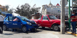 Dos pasajeros de un carro de ruta resultaron lesionados al chocar la unidad en la que viajaban con una camioneta, en la colonia Tamaulipas.