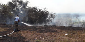 Voraz incendio arrasó con varias hectáreas de pastizal y tule del sistema lagunario, ubicado a un costado del libramiento poniente, tramo correspondiente a Tampico.