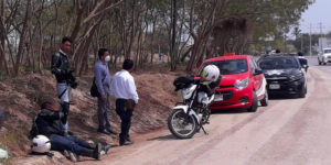Por evitar que lo impactara un tráiler, un motociclista derrapó cuando circulaba por la carretera Tampico Valles, la tarde del viernes.