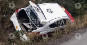 Pierde el control de la unidad al evitar a un auto que rebasó de forma imprudente