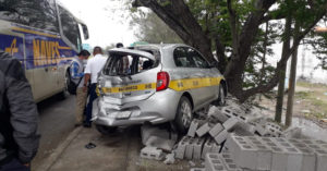 Bus trepa a banqueta a taxi