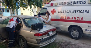 Un sujeto que ocasionó un choque con un carro de ruta acuchilló a su conductor y después tomó como rehén a una mujer al interior de una farmacia en la colonia Altamira Sector 4 en el municipio de Altamira, a la cual amenazó con un cuchillo en el cuello.