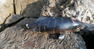 Apareció muerta una segunda tonina la mañana de este lunes en las escolleras de Playa Miramar, presuntamente quedó atorada en una red de pesca.