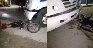 Motociclista, resultó lesionado al impactarse contra un microbús durante la madrugada de este domingo.