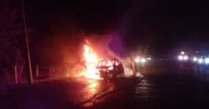 Voraz incendio consumió un auto compacto que circulaba sobre la carretera Tampico-Mante, la noche del martes en Altamira.