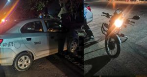 Al suelo fue a dar un motociclista que se impactó con un carro de ruta, la noche del martes, en la colonia Morelos.