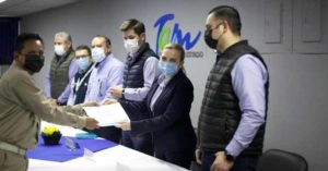 Esta mañana en la sala de juntas de capacitación del organismo operador del agua siguiendo el protocolo de la sana distancia, se realizó la entrega simbólica de 40 bonos de productividad, correspondiente al cuarto bimestre del año 2020 a los trabajadores del Sindicato de la Comapa de Tampico y Madero