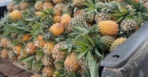 La situación ha impedido al padre comercializar sus piñas, motivo por el cual su hijo ha tomado la iniciativa de ofrecerlas directamente desde su domicilio.