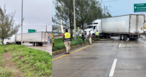 La caja que transportaba obstruyó la mitad del bulevar, lo que ocasionó una larga fila de vehículos.