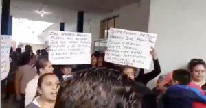 Los papás se manifestaron afuera del plantel, generándose empujones, por lo debió intervenir la Policía Estatal.