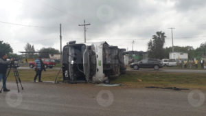 Un autobús de Transpaís volcó en la carretera Tampico-Mante, en Altamira.