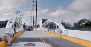 Está construido por 2 rampas de acceso, de 26 metros de largo y 6 de ancho con barandal metálico y una pavimentación de 20 cm de concreto hidráulico