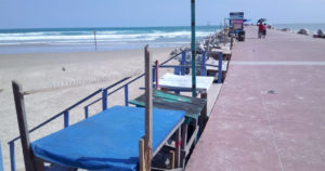 Con el cambio de gobierno, comerciantes ambulantes aprovecharon para instalarse en las escolleras de Playa Miramar y es que hasta construyeron puestos de madera.