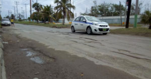 La Secretaría de Obras Públicas hizo trabajos de mantenimiento con asfalto, sin embargo a la altura de la calle Jiménez y Matamoros hay una gran cantidad de baches.