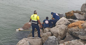 El hallazgo causó asombro entre pescadores y visitantes que observaron el cuerpo del animal sin vida, parcialmente sumergido en el agua