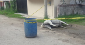 Los hechos se registraron en la calle Séptima, el animal deambulaba cuando piso un cable que colgaba de un poste de la Comisión Federal de Electricidad.