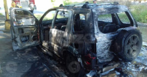 El vehículo con placas de circulación SLU3184 se encontraba estacionado cuando de la parte frontal comenzó a salir fuego y al arribo de los tragahumo ya la camioneta estaba envuelta en llamas.