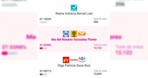 Con escasos 59 puntos de diferencia ente la candidata del PAN, Rosario Gonzalez Robles y Olga Sosa de Morena.