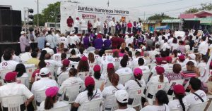 En lo que fue su primer acto oficial masivo de campaña, aseguró que construirá un parque lineal en la calle Colombia en la colonia «La Borreguera»