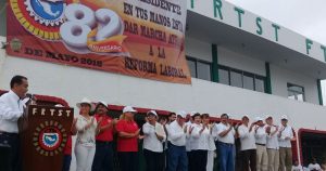 La ceremonia acaba de iniciar hace unos momentos frente a las instalaciones de la CTM Tampico en donde recuerdan a los mártires de Chicago y Cananea.