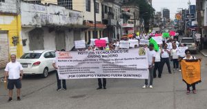 Con motivo del Día del Trabajo, los inconformes caminaron desde las instalaciones del plantel hasta la plaza Galeana de la colonia Tinaco.