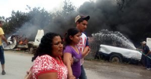 Numerosas personas se encontraban en ese punto de la carretera Tampico- Valles esperando la cabalgata encabezada por el candidato priista a la diputación federal por el distrito 01 Manuel Guerrero Sánchez.