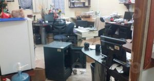 Encontraron un boquete al interior de una oficina y las cajas fuertes violentadas, además fueron encontrados fajos de billetes en el suelo