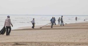 Hay una cuadrilla permanente de limpieza en el máximo paseo turístico