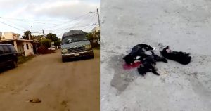 El chofer de una camioneta de transporte escolar arrolló a una perrita y sus crías que estaban en la calle