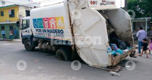 Momentos de terror vivieron los trabajadores que viajaban en la unidad quienes de inmediato se pusieron a salvo para no hundirse con todo y camión
