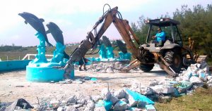 La escultura está siendo tratada para retirar la pintura y mantener su apariencia original