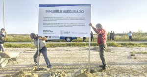 Personal del Ministerio Público de la Procuraduría General de Justicia de Tamaulipas coloca la tarde de ayer los señalamientos correspondientes; el terreno de mil 600 hectáreas, en el municipio de Altamira, se encuentra en poder de un particular