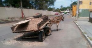 Tras sufrir daño en una llanta, el dueño de la carreta la dejó abandonada en la vía pública con todo y burro, por lo que fue asegurada por tránsito