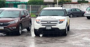 Va a laborar con su camioneta que tiene los logotipos del partido al Centro Regional de Educación de Madero