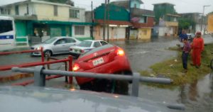 Al realizar una mala maniobra, un automovilista terminó en un dren pluvial de la colonia Hidalgo