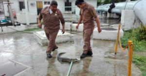 Aseguran a cocodrilo en la Primavera