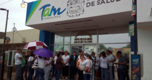 Como apoyo a sus compañeros detenidos, trabajadores del Hospital Civil de Madero se manifestaron la mañana de este sábado