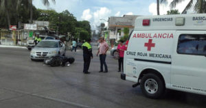 El motociclista se impactó contra el Neon, resultando sumamente lesionado